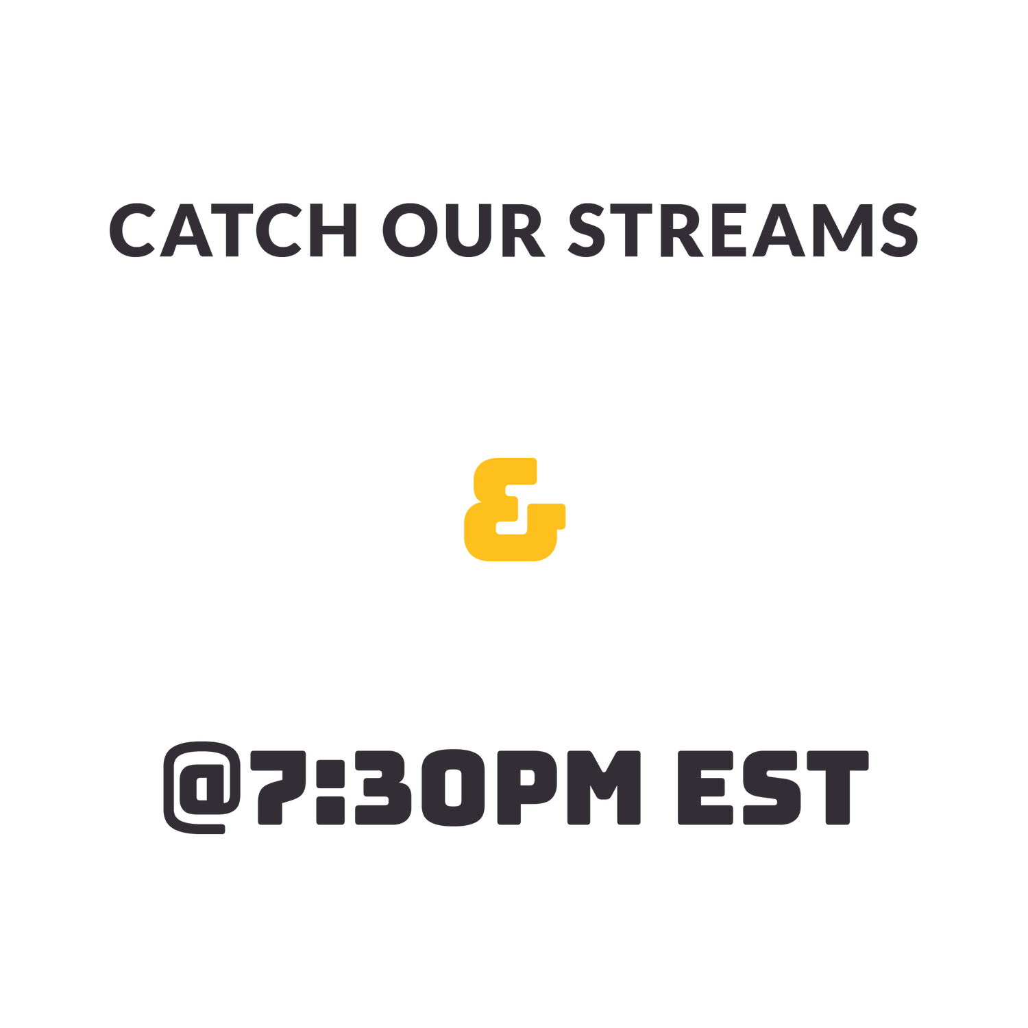 We stream on Tuesdays and Thursdays @ 7:30PM EST so be sure to tune in and make sure you don't miss a session!