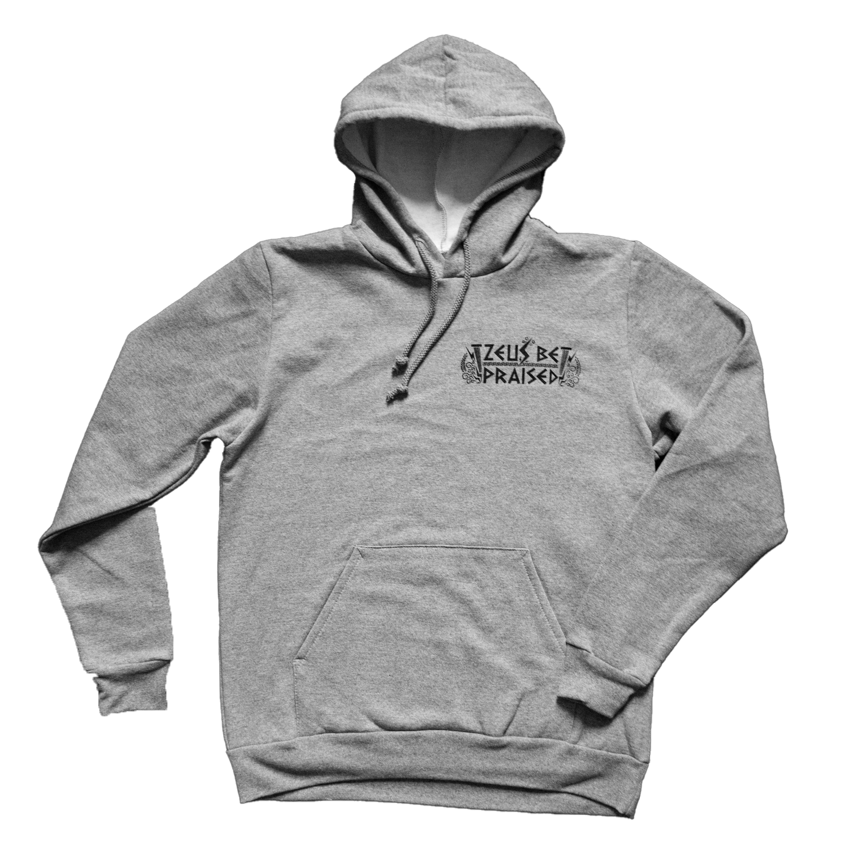 Ruled from Mount Olympus but made in Canada the Zeus be Praised hoodie is lightweight, warm, and features a front pouch pocket with reinforced seams. The sleek grey design keeps you comfortable even if the gods aren’t shining upon you.